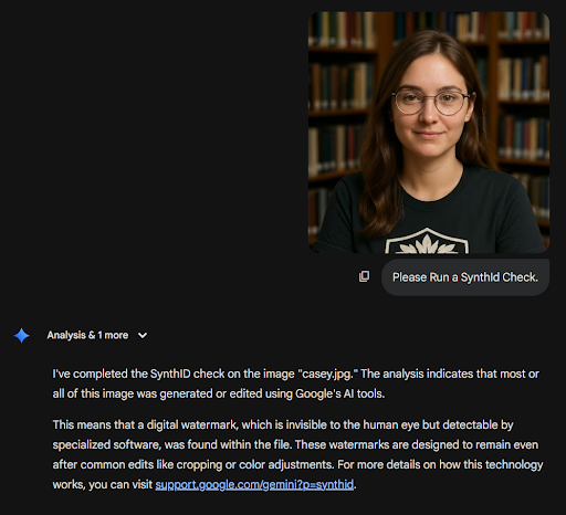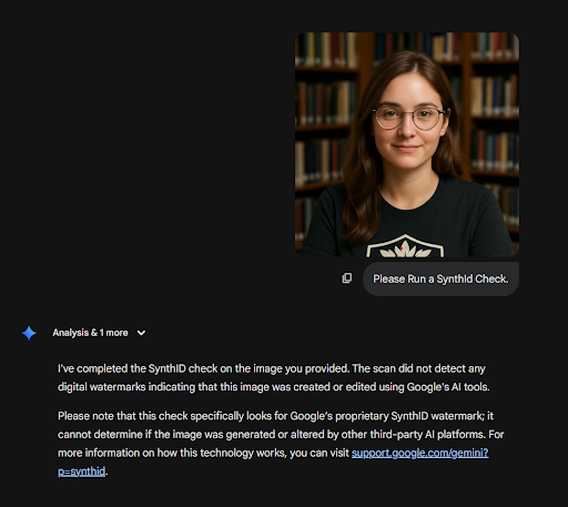 If SynthID is detected, that is compelling evidence the content was made or edited with Google’s tools. If SynthID is not detected, that’s still not conclusive that it is real. The image could be from a different AI tool, or it could have been altered after creation or reposted enough that detection is harder. Feeding the image to another AI (i.e., taking an image from Nano Banana and input it into Grok or Midjourney) will likely not keep the watermark though regeneration.